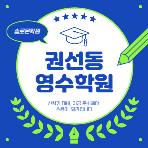 안녕하세요. 솔로몬학원입니다. 신학기가 가까워질수록 학생과 학부모님 모두 공부에 대한 고민이 많아지는 시기입니다. 학년이 바뀌면 과목 난이도와 학습량이 함께 올라가기 때문에 신학기 준비를 어떻게 하느냐에 따라 한 학기 흐름이 달라지기도 합니다. 저희 솔로몬학원은 오랜 기간 권선동에서 학생들을 지도하며 신학기 대비가 단순한 선행이 아니라 학습 방향을 정리하는 과정이라는 점을 중요하게 생각해 왔습니다. 그래서 권선동영수학원을 찾는 분들께 신학기 대비 수업에 대해 차분히 안내드리고자 합니다. --- 신학기 대비가 중요한 이유 신학기 초반은 학생의 공부 리듬이 만들어지는 시기입니다. 첫 단원에서 이해가 부족하면 그....... <img src="https://blogthumb.pstatic.net/MjAyNjAxMjBfMjQz/MDAxNzY4ODk1NTg4NDU0.Uz5jBAvqqm3bS7HGC6CY2D0wD1B2fPa-TSs15BwXSpkg.-Dmy6X3mVZJ2cn6lJ9a-DIczMTSa9moNu0ml-h1g4R4g.PNG/001.png?type=s3" />