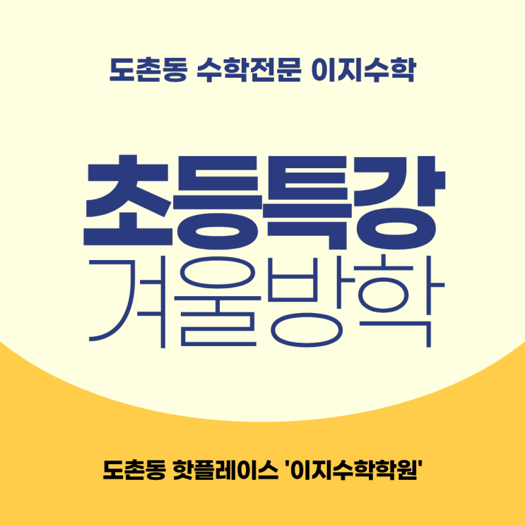 이지수학 초등부 겨울방학 수학 특강 안내 방학 동안, 기존 60분 → 90분 집중수업으로 확대 운영합니다. 안녕하세요 도촌동 수학학원 이지수학입니다. 방학은 단순히 쉬는 기간이 아니라 초등 수학의 기초를 완성하는 가장 중요한 시간입니다. 그래서 이번 겨울, 이지수학은 초등부 전 수업을 60분에서 90분으로 강화된 집중 개별 수업으로 운영합니다. 운영 일정 안내 학원 정규 방학일 : 12/31, 1/2 겨울방학 특강 기간 : 1/12 ~ 2/27 정규 수업 + 방학 특강 + 주간 학습관리 시스템이 방학 전체 기간 동안 함께 운영됩니다. 이지수학 초등부 개별수업 방식 “학생의 능력을 정확히 분석하고 필요한 만큼 가르칩....... <img src="https://blogthumb.pstatic.net/MjAyNTEyMDlfMTQg/MDAxNzY1MjY1MzEyMTk3.kpd2t-OCsNezSYpJeEI-HoPDH2Xd653iuUoGp25rWE0g.CDhJMiBeGykjYmNhfT-4c6as1VLu5HFSmZCCYxn4IT0g.PNG/1.png?type=s3" />