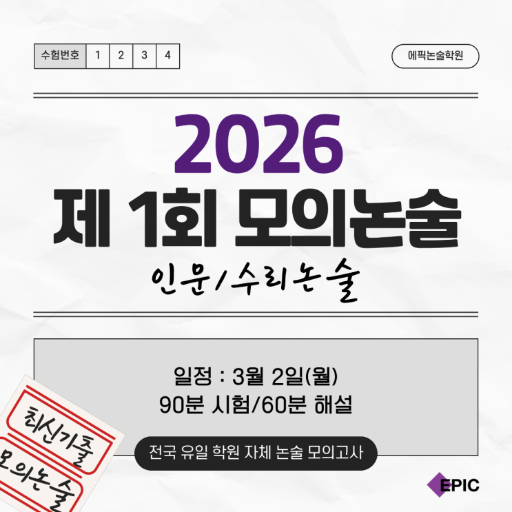 분당에픽 ㅣ 3월 2일 제 1회 에픽 모의논술고사 실시 ㅣ 인문,수리논술