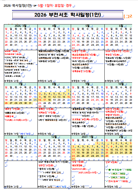 2026년 부천서초 학사일정