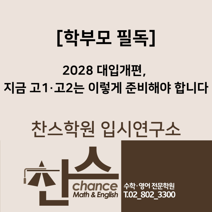 [찬스학원 입시분석] 2028 대입개편, 지금 고1·고2는 이렇게 준비해야 합니다