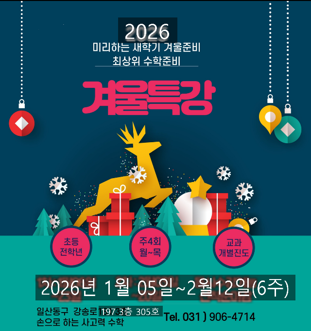 2026년 수학공부를 행복하게 할수 있게 손으로하는 사고력수학학원과 함께 겨울방학 특강에서 만나요~~~!! <img src="https://blogthumb.pstatic.net/MjAyNTEyMDVfMjI5/MDAxNzY0OTI0OTQ4NDI3.giNlEYgEGOYVDxFU8gnDo9vmS-twCK0sfIc5iwbMIaYg.NcY40P0dcs4A2hhyHLYjZw-ysmxRnz1g49eLyGpmSGMg.PNG/%B4%D9%BF%EE%B7%CE%B5%E5.png?type=s3" />
