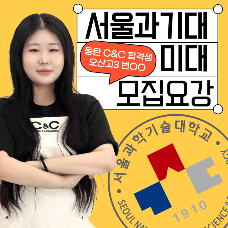 안녕하세요 동탄입시미술학원 친구들, 오산 미술학원 친구들! 수많은 친구들의 워너비 서울과학기술대학교 미대 수시/정시 모집요강 계획안 정보를 가지고 왔습니다~! 동탄입시미술학원 , 오산,수원미술학원 친구들의 가장 많은 관심을 가지고 있는 서울과학기술대학교 미대 2027 수시정시 요강 보면서 미래 준비를 차근차근 함께 준비 해보아요~!! 서울과학기술대학교는 산업디자인전공 시각디자인전공 도예학과 금속공예디자인학과 조형예술학과 로 이루어져 있습니다! *밑줄친 과들은 기초디자인을 기본으로 실기 시험을 치르고, 조형예술학과는 인물과 정물이 있는 상황표현으로 실기를 치루고 있는점 확인해주세요! 2027 서울과학기술대학교....... <img src="https://blogthumb.pstatic.net/MjAyNjAxMjJfMjA3/MDAxNzY5MDgyOTc2NDU0.gOslBIYmN8D8Ne8WPlxpCRkETzo-MJt3y4_cxVkoKU0g.8tY9jJsUZL0rDRIaTBCb4eFLJVC7WcwsuzemeBuEzjEg.PNG/%BC%AD%BF%EF%B0%FA%B1%E2%B4%EB_%B5%BF%C5%BA%C7%D5%B0%DD%BB%FD_%BF%C0%BB%EA%B0%ED3.png?type=s3" />