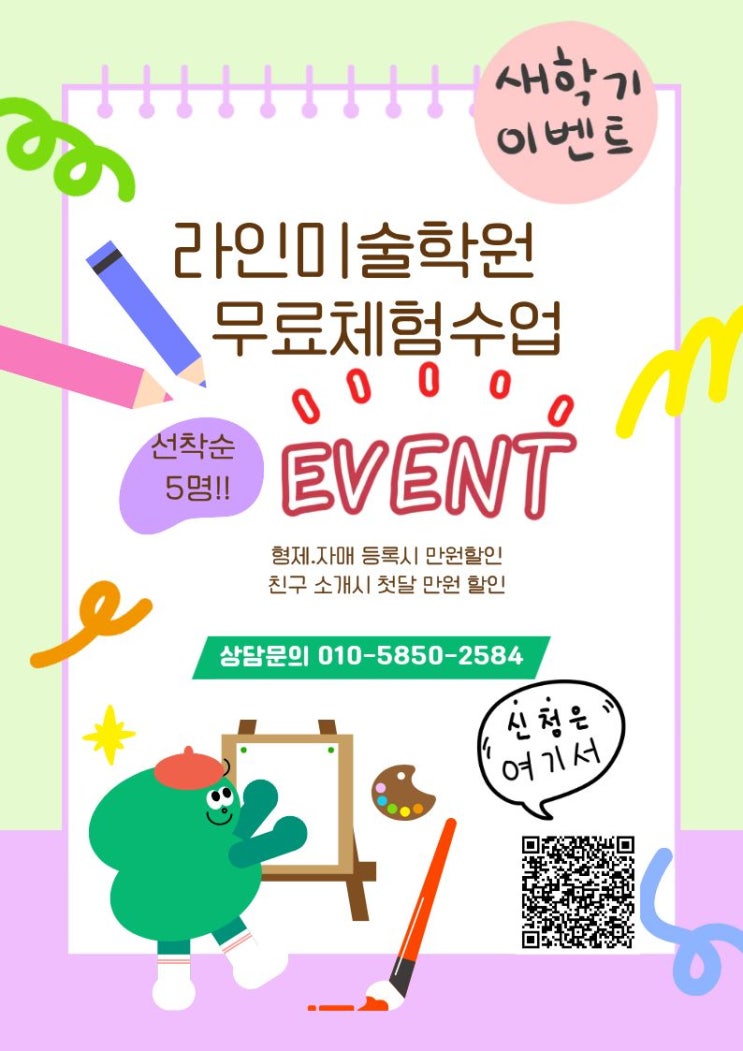 안녕하세요 라인미술학원 입니다. 곧 새로운 3월 설레는 새학기가 시작되는데요. 우리 아이들 스케줄 짜느냐고 어머님들 많이 바쁘시죠? 우리 아이들 배워야 하는것도 많고 시간은 없고 올해 예체능 미술이 더욱더 주목 받는 이유중 하나가 다양하지만 그중 매체에서 많이 나오는 걸로 인해 인기가 많아 진것 같아요. 예원학교, 예술고등학교 인기와 예체능 소득공제 적용에 따라 인것 같은데요. 인기 많은 모 그룹 회장,스타 분들 자녀들까지 많이 인기가 이유 찾는 이유가 있죠! 두쫀쿠 이어 미술도 큰 붐이 일어나고 있답니다! https://docs.google.com/forms/d/1Nd0qb24lT8scJ7jf5mYHd7Us_y9Z-jG88KxcT5AyWlk/edit 정말 인기가 많아진 미술로....... <img src="https://blogthumb.pstatic.net/MjAyNjAyMTlfMjEy/MDAxNzcxNDkwNTE5MTEw.CbVIXQHXMdveezI_FLWXr1wqhmlyv1NVDELSsKbTJUUg.rJTsbtmnrQ0lVcFqOs69XSIx-ex1T_eGrxgOycurJC4g.JPEG/KakaoTalk_20260113_150853123.jpg?type=s3" />
