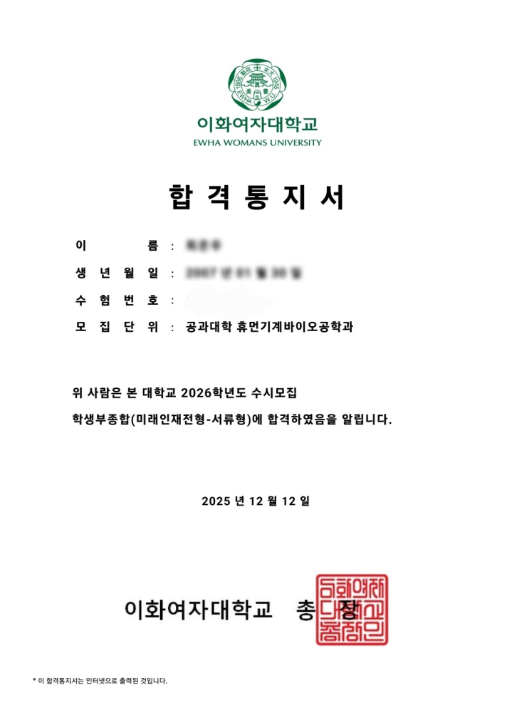 [이화여대 합격] 프라임수학의 결과 남가좌동 명지고등학교 1등급 스토리 입시가 끝난 뒤 학부모님들이 가장 많이 하시는 말이 있습니다. “돌이켜보면, 안 될 수가 없던 아이였어요.” 오늘 소개할 학생이 바로 그런 경우입니다. 남가좌동 명지고등학교에 재학하며 단 한 번도 흐트러짐 없이 공부 루틴을 유지했고, 결국 수학 1등급, 그리고 이화여대 합격이라는 결과를 만들어낸 프라임수학 학생 이야기입니다. 이 글은 단순한 합격 후기가 아닙니다. 왜 이 학생은 흔들리지 않았는지 왜 결과가 나올 수밖에 없었는지 남가좌동 수학학원, 목동 수학학원을 고민하는 분들이 반드시 참고해야 할 학습 태도를 담고 있습니다. “공....... <img src="https://blogthumb.pstatic.net/MjAyNTEyMjBfNTIg/MDAxNzY2MTY1NjM3NDM5.XPI9AfKM0oD6a1uzJnsUUnJTSAAujnWtYTMRXorIqjAg.700XZMmXVDkK15IzY-CPtyWktxWNN69rZx9ZKcgS5a4g.PNG/image.png?type=s3" />