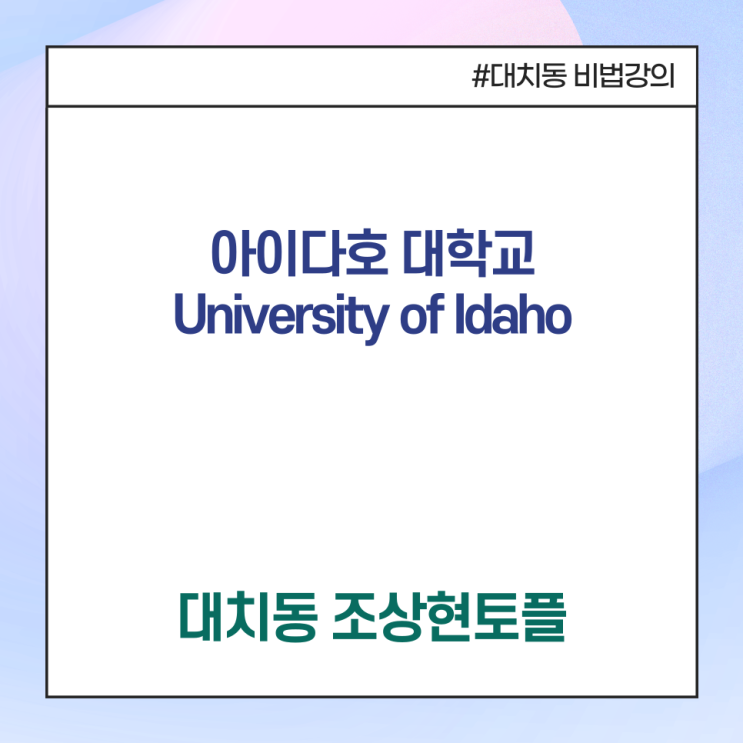 [아이다호 대학교 University of Idaho] 미국 아이다호주 모스코(Moscow) 위치, 순위 아이다호대 QS 세계대학순위 1001-1200위 1. 아이다호 대학교 University of Idaho 세계대학순위 아이다호 대학교는 미국에서 최고의 공립 대학 중 하나로 평가받고 있으며, QS 세계 대학 순위 2026에서 1001-1200위에 오르며 그 위상을 인정받고 있습니다. 2026 QS 세계대학 순위 1001-1200위 2025 QS 세계대학 순위 1001-1200위 2024 QS 세계대학 순위 1001-1200위 2023 QS 세계대학 순위 801-1000위 2. 아이다호 대학교 University of Idaho 소개 아이다호 대학교는 미국 아이다호주 모스코(Moscow)에 위치한 연구 중심의 공립 종합대학교입니다. 아이다호....... <img src="https://blogthumb.pstatic.net/MjAyNTEyMTdfODQg/MDAxNzY1OTQ0Mjg3NDI0.BULYzLBDjJ4ZKEoGDpIMOTa0eG82u_M2wDu19Yh5eCgg.7S29ehJ2VHTkfYwnQirfqCBQw36gE1hxbZ52HKsCVIgg.PNG/QS-Rankings-001.png?type=s3" />
