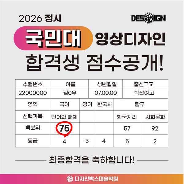 2026학년도 국민대학교 합격생 점수공개~!!! - 부산 입시미술학원 디자인 박스