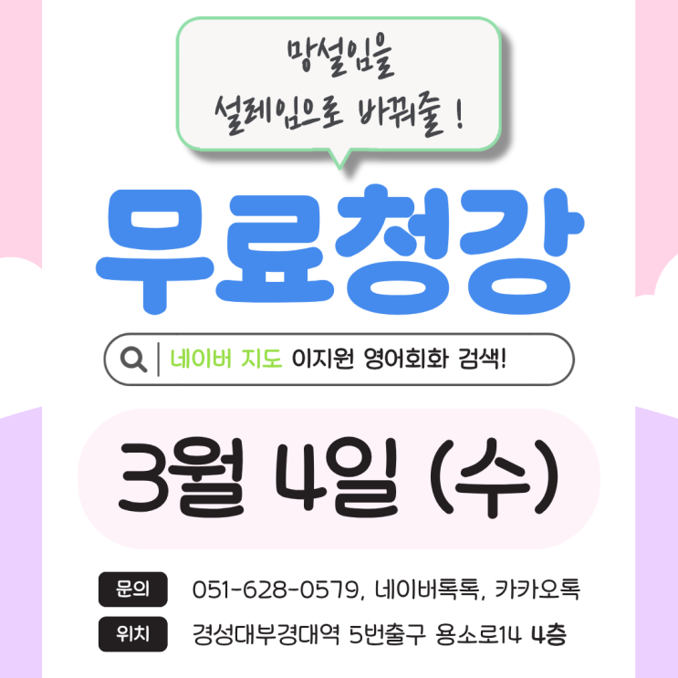 [부산 해운대 기초영어회화 EASY ONE] 망설임을 설렘으로! 3월 무료청강에 참여하세요!