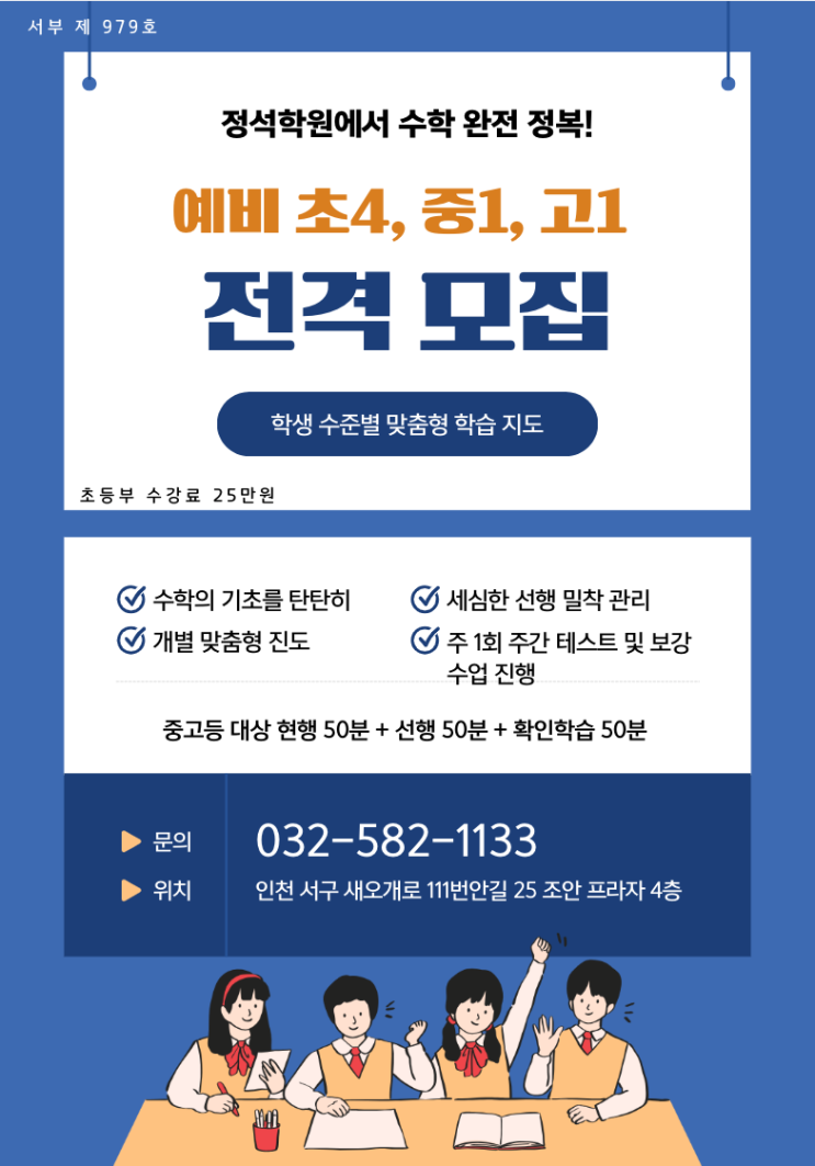 [인천수학학원] 예비 초4·중1·고1 전격 모집|정석학원에서 수학 완전 정복