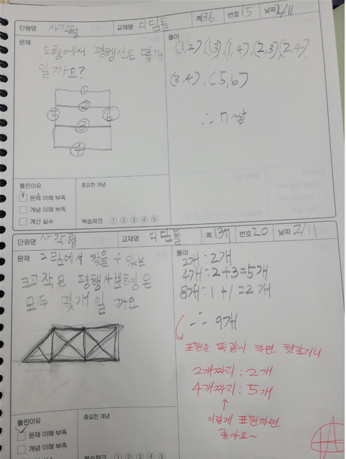 안녕하세요~ 오늘은 일산 와이즈만 초등수학 WTC 수업을 소개해드리려고 합니다! WTC반은 Weizmann Top Class의 약자로 4,5,6학년에 1반씩 개설되어있는 탑반입니다 오늘은 그 중 4학년 WTC반인 4WTC반의 수업에 대해 소개해드리겠습니다 4WTC반의 수업은 월,수,금 으로 구성되어 있으며 월,수 수업은 교과 수업 / 금 수업은 경시(사고력) 수업으로 진행됩니다 오늘 소개해드릴 내용은 1. 교과 수업 중 오답노트 2. 경시 수업의 교재 이렇게 두가지를 소개해드리겠습니다~ 초등학생 자녀를 둔 부모님이라면 '우리 아이가 풀이, 식 정리를 너무 못해' 라는 생각 한번쯤 가져보셨을 고민이시죠? 또, 진도는 계속 나가는데 우리 아이가 잘....... <img src="https://blogthumb.pstatic.net/MjAyNjAzMDRfMTQz/MDAxNzcyNjA2NzgyMzcy.GWRivHjAlfKEuaQOjX1GbAKaCMsxIUCGX3Z9NEezRJIg.dCS345sCNCmRF92z-2uK0pHuIL8MbMXYo1J2GBNNuyYg.PNG/image.png?type=s3" />