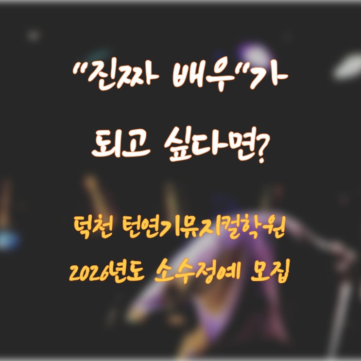 "작품비 얼마예요?" ❌ 턴연기뮤지컬학원은 그런 거 안 받습니다! ❌ 입시 시즌마다 작품비 걱정에 밤잠 설치셨나요? 턴은 오로지 여러분의 '합격'과 '실력'에만 집중합니다. ✅ 왜 턴(Turn)이어야 하는가? 1️⃣ 현역 선생님들의 직강 : 지금 무대에서 뛰는 쌤들의 찐~한 노하우 전수! 2️⃣ 소수정예 끝판왕 : 예비 8명, 입시 8명 끝. 더 이상 안 받아요. (선착순 마감 주의!) 3️⃣ 기본기 빌드업 : 기초 훈련부터 탄탄하게, '연기 근육'을 만들어 드립니다. 4️⃣ 미친 접근성 : 덕천역 4번 출구 나와서 눈 깜빡하면 도착(도보 30초!) 화려한 광고보다 확실한 실력으로 증명하겠습니다. 내 입시의 터....... <img src="https://blogthumb.pstatic.net/MjAyNjAyMjVfNjgg/MDAxNzcyMDI5NTIyMzQ5.Sr5KYWWXu9_duV5oRZCbUs_eLgMpzbo_7cbuthMuc5Eg.n3mNT68J7CfK2bYJhj7VEFDlUHyNKceJsq4cOvx87tsg.JPEG/5.jpg?type=s3" />
