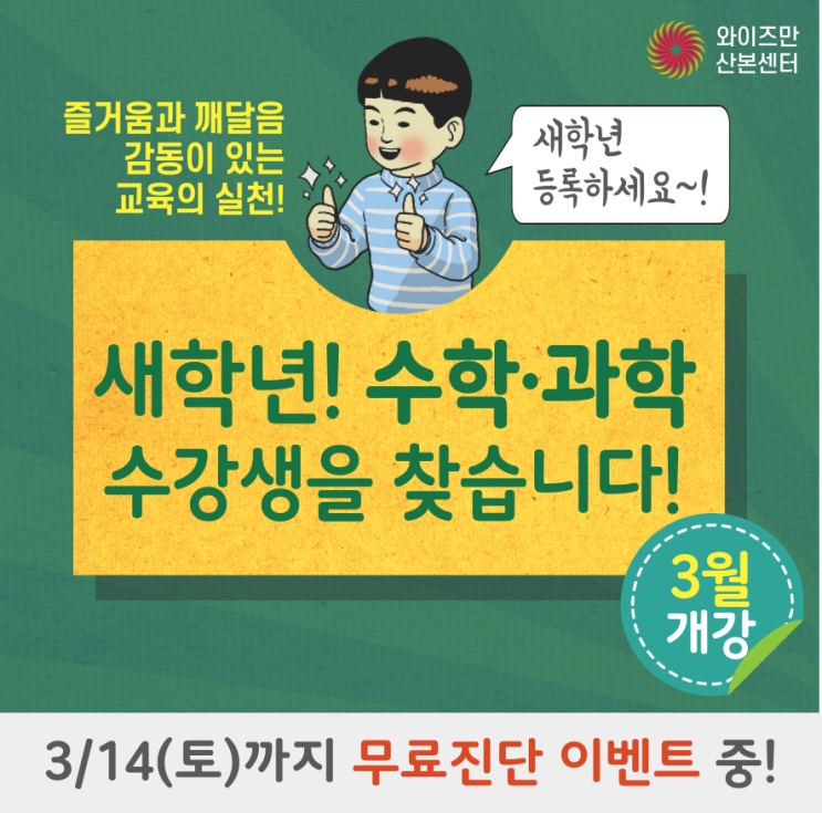 [와이즈만 산본] 새학년(26년 3월) 개강반 안내(7세/초등부/중고등부)