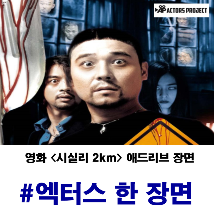 안녕하세요 엑터스 프로젝트 연기학원입니다! 영화 <시실리 2km> 속 임창정과 우현의 '나이 논쟁' 장면은 배우들의 여러가지 애드리브의 시도가 빛을 발한 한국 코미디 영화의 명장면입니다. 당시는 필름에서 HD로 넘어가는 과도기적 시기로, 촬영 현장의 여러가지 시도가 행해지던 때였습니다. 임창정과 우현, 두 배우는 이 정해진 틀에 갇히기보다 현장의 공기를 타고 흐르는 자유로운 애드리브를 선택했습니다. 상대의 얼굴을 빤히 바라보며 "너 무슨 병 걸렸냐?"라고 묻는 임창정의 능청스러움과, 그에 굴하지 않고 억울한 표정으로 일관하는 우현의 리액션은 계산된 연기로는 결코 도달할 수 없는 리얼리티를 선....... <img src="https://blogthumb.pstatic.net/MjAyNjAyMjNfNzAg/MDAxNzcxODMxNTU5OTQy.FlMjMKxMHv2vEG8T4N351IyVSA0QbxzI4eA6ZaXuRt0g.Z0cjHLg5PEg4Mys6-R4awisoTCNuzDZ_sbNp_MDz7qcg.PNG/%BD%BA%C5%A9%B8%B0%BC%A6_2026-02-23_162516.png?type=s3" />