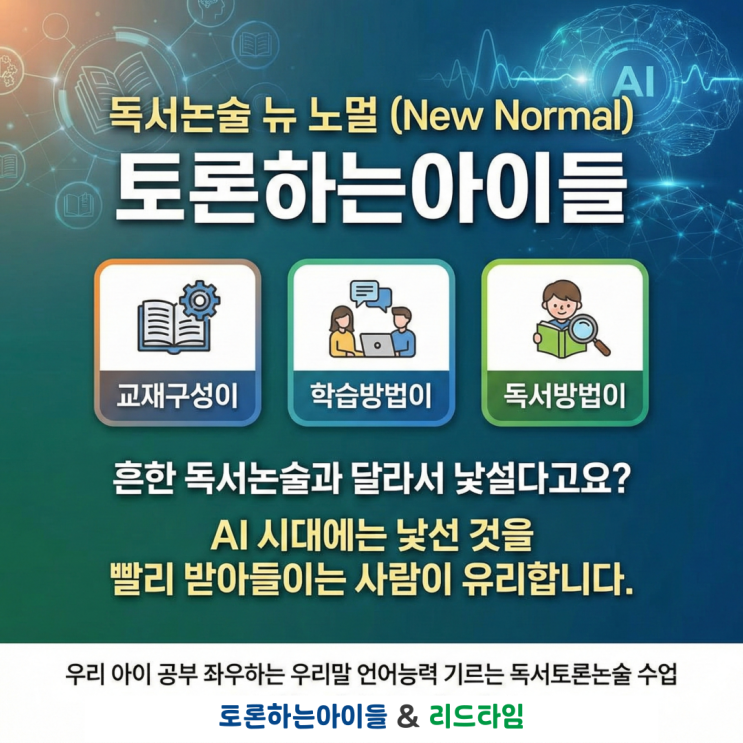 “이렇게 공부해서, 우리 아이 괜찮을까요?” 요즘 학부모님들께서 가장 자주 하시는 말입니다. AI가 숙제도 해 주고, 검색하면 웬만한 답은 다 나오고, 세상은 하루가 다르게 변하고 있는데 지금 아이가 하는 공부가 과연 미래에도 의미가 있을지 불안해지는 건 너무도 자연스러운 일입니다. “지금 열심히 시키는 이 공부가, 아이에게 정말 필요한 힘이 맞을까요?” 이 질문 앞에서 많은 부모님들이 방향을 잃고 고민하고 계십니다. 그래서 더 분명해져야 할 한 가지 기술이 발전할수록, 아이에게 필요한 능력은 오히려 단순해집니다. 정보를 얼마나 많이 아느냐가 아니라 그 정보를 어떻게 생각하고 판단하느냐입니다. AI는 정보를 대신 모아....... <img src="https://blogthumb.pstatic.net/MjAyNjAxMjlfMjg4/MDAxNzY5NjU1NTUwNTU0.Aa3xBoFED1KPN1QAXFi3KgZ7bRHLsw3U69L6xOobo4wg.kYH7cjGNXqP4eGnzXrN8ed8SsHGzG1SORbBLaZ21Hjkg.PNG/000_%284%29.png?type=s3" />
