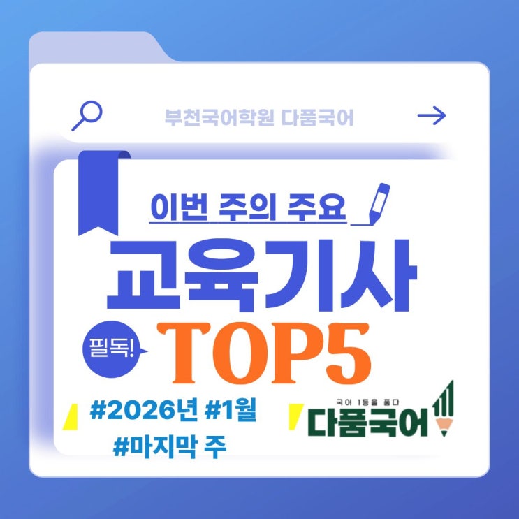 [부천 국어학원 다품국어] 26년 1월 다섯째주 주요 교육입시기사TOP5 스크랩