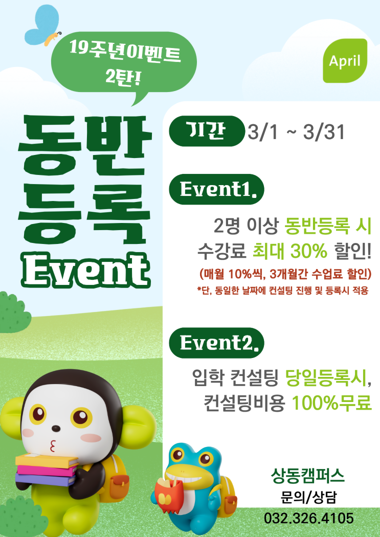 [상동April어학원] 19주년 이벤트 2탄 동반등록 Event OPEN!