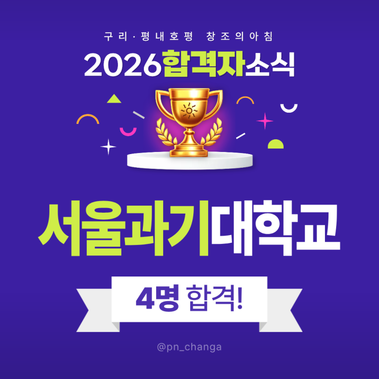 < 2026학년도 구리다산·평내호평 창조의 아침 합격자> 서울 과학기술 대학교 4명 합격!!