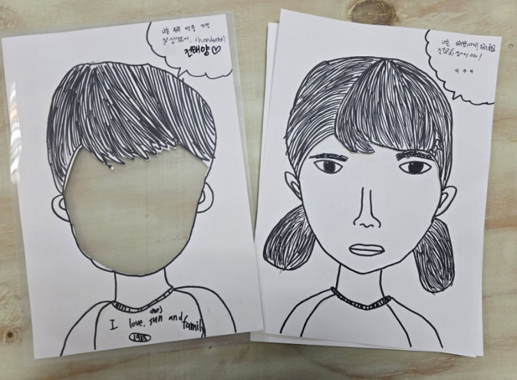 **“사람 시리즈”** 첫 시간에는 “얼굴형 그리기” 수업을 진행했습니다. 먼저 눈, 코, 입, 눈썹, 입술을 하나씩 자세히 관찰하며 묘사해 보았습니다. 그 다음 장의 화지에는 눈·코·입을 제외한 얼굴형과 머리 스타일을 자유롭게 표현해 보았습니다. 아이들은 얼굴형과 헤어스타일이 달라지면 성별이나 분위기가 어떻게 달라 보이는지 직접 체험해 볼 수 있었습니다. 세 장의 얼굴이 완성된 후에는 각 얼굴에 어울리는 이름과 성격을 생각해 보고, 말주머니에 소개글도 적어 보았습니다. 아이들의 기발한 상상력과 개성 있는 이야기를 엿볼 수 있는 즐거운 시간이었습니다. <img src="https://blogthumb.pstatic.net/MjAyNjAzMjZfMTQg/MDAxNzc0NTIxODE1NDUz.yzar4ZQCNZsxGhpv34Y2H9JuFeUitiAakh3GZ8CYieIg.tsRE09QAbYrms155HOSor_50I69mktK6qnjw9A5DCFkg.JPEG/900%A3%DF20260326%A3%DF153205.jpg?type=s3" />