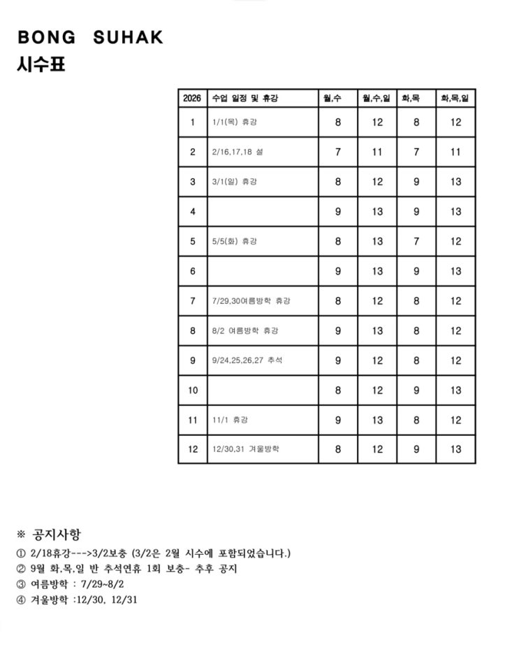 2026년 월별 시수표 안내해 드립니다. <img src="https://blogthumb.pstatic.net/MjAyNjAyMjNfMTM1/MDAxNzcxODM5MDc2NjY2.R87wo_COtA64G4tMEOBwgSOvjH1VvBvkS4kQbld-zUcg.I81POzmZHxry0EGubrBjBwJuHaIq_sioGW_gJe1GRPog.JPEG/IMG%A3%DF0913.jpg?type=s3" />