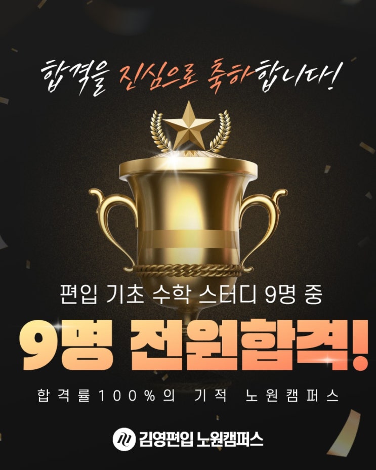 [노원 편입학원] 수학 노베이스 9명 전원 합격 실화? 기초수학 스터디 백분위 17점 상승의 기적!