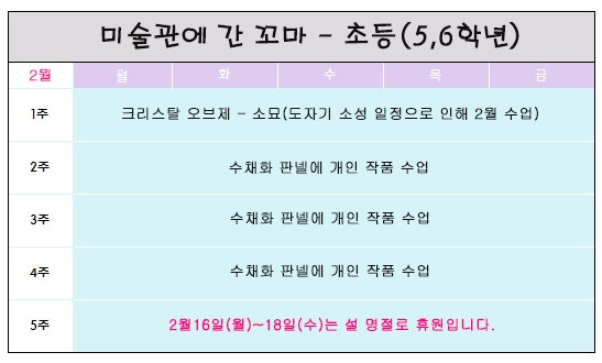 [보라매미술]미술관에간꼬마 미술 -2월 수업 계획표