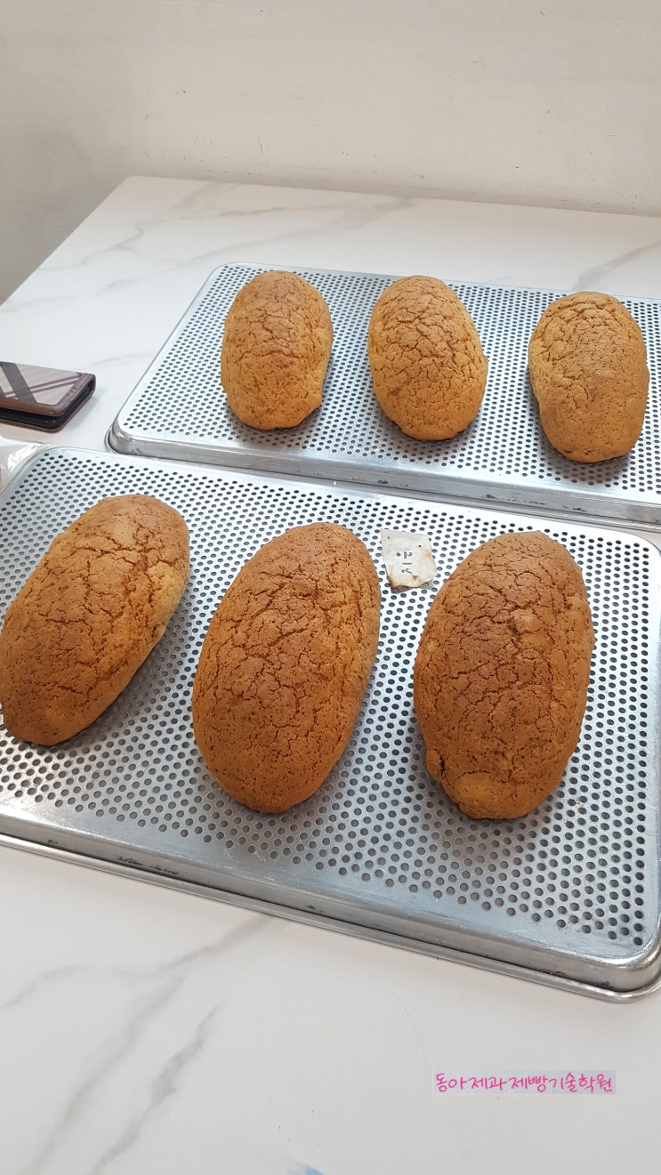 학생분들이 만든 모카빵 토핑용 비스킷(계량시간에서 제외) 모카빵을 제조하여 제출하시오. 1) 배합표의 빵반죽 재료를 계량하여 재료별로 진열하시오(11분) 2) 반죽은 “스트레이트법” 으로 제조하시오(단, 유지는 클린업 단계에서 첨가하시오.) 3) 반죽온도는 27℃를 표준으로 하시오 4) 반죽 1개의 분할무게는 250g, 1개당 비스킷은 100g씩으로 제조하시오 5) 제품의 형태는 타원형(럭비공 모양)으로 제조하시오 6) 토핑용 비스킷은 주어진 배합표에 의거 직접 제조하시오 7) 완제품 6개를 제출하고 남은 반죽은 감독위원 지시에 따라 별도로 제출하시오 모카빵, 제빵기능사, 동아제과학원, 동아제과제빵, 제빵자격증, 제과기능사, 제과자격....... <img src="https://blogthumb.pstatic.net/MjAyNjAyMTFfMTEy/MDAxNzcwODA0MDU5NTQ5.pfDJzLwM_DrB0gJeTGit2LU8WlXFnfZzPQLY3tsj1Y4g.h1xoJGdBINqrwFrthdwezyPBEz1Fj5jUVjAZliuMJ2Qg.JPEG/20260211_171734.jpg?type=s3" />