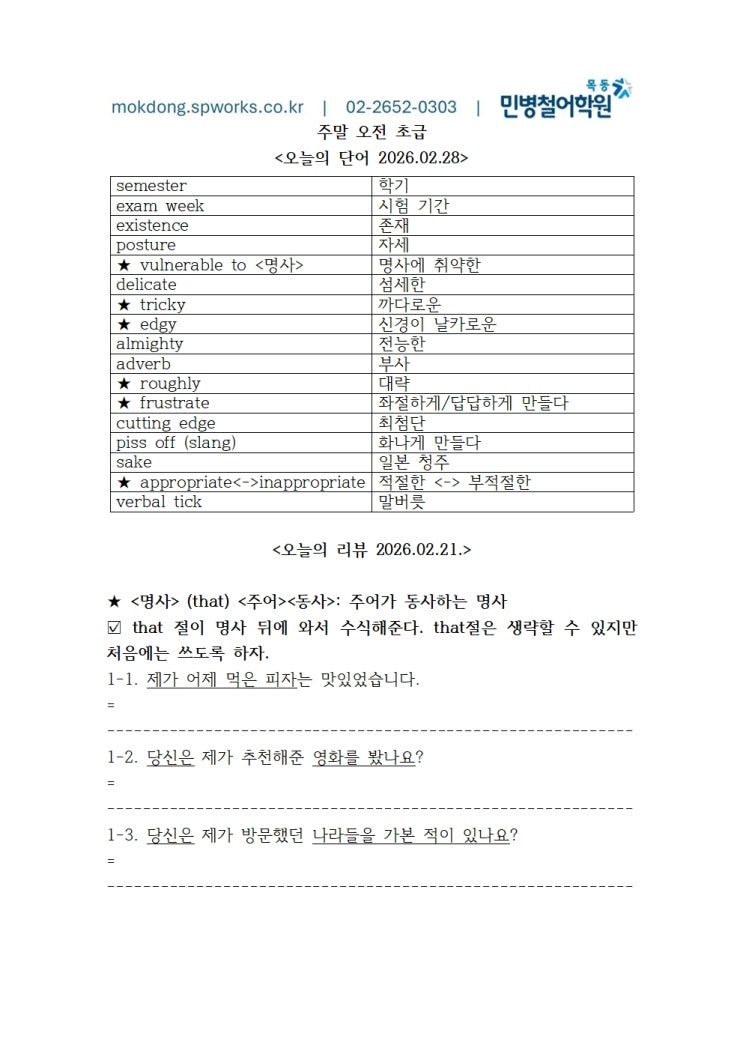 2026.02.28. 주말 오전 초급 106호 (10:00-12:00)