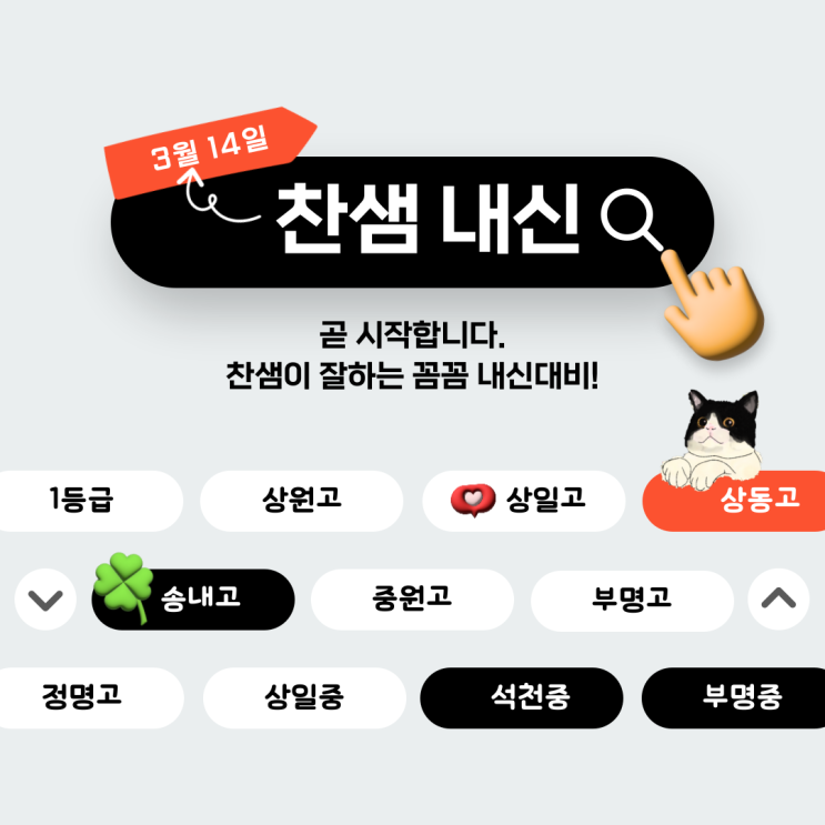 3월 14일부터 시작하는 찬샘국어학원 학교별 맞춤 내신대비, 결과로 증명하겠습니다.