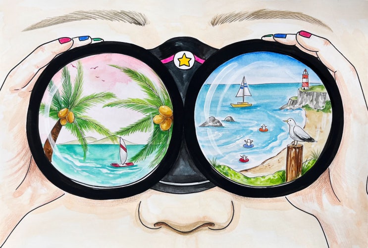 마멜아트. 2024년 수업. 망원경으로 보는 여름. 광주북구미술학원. 광주아동미술.