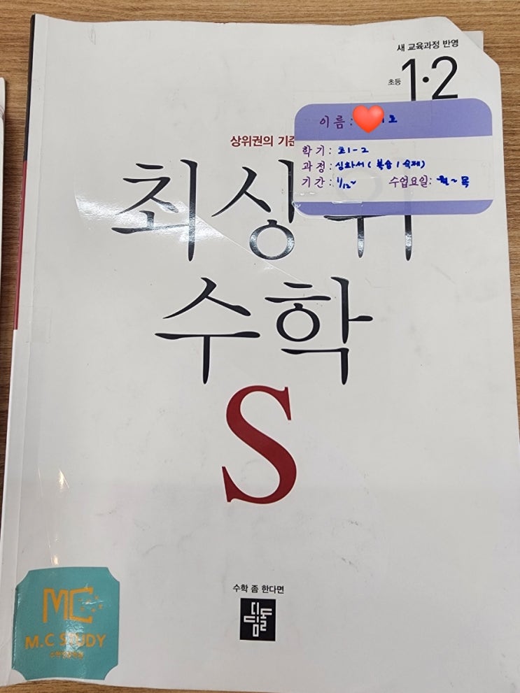 호수초 2학년 숙제 검사 최상위s 1-2 도안동 수학학원 엠씨스터디