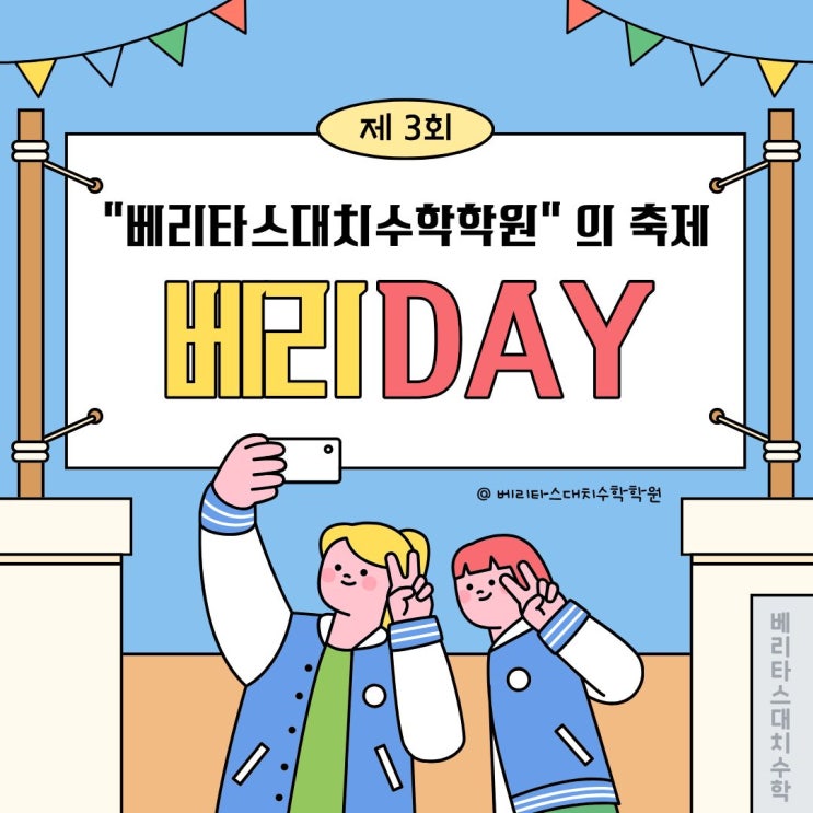 안녕하세요~ 베리타스대치수학학원입니다. 오랜만에 저희 학원 소식을 가져와봤습니다. 매년 학기 마치고 학교방학에 맞춰 진행하는 "베리타스대치수학학원 데이"를 줄여서 "베리데이"입니다. 우선, 베리데이 시작하기 앞서 학력평가를 시행합니다. '초등부'의 경우 학기가 마무리되는 시점이라 학기말평가를 시행하고, '중등부'의 경우 새로 시작하는 학기에 대한 학교시험을 대비하고자 시행하고 있습니다. 학력평가에 대한 성적분석표도 학원카톡으로 발송드리고 있습니다. 그러고 나면, 매년 학기동안 열심히 따라와준 우리 학생들에게 수학학습 결과에 대한 상금도 수여하는 시상식도 진행하고, 초....... <img src="https://blogthumb.pstatic.net/MjAyNjAzMTJfMjAz/MDAxNzczMjkwMDE0NzIy.KauEWDtJr5QTmNmbViG5We6jDJ6rOwhfLYkwWDK4ZP4g.K1_KqFadpxp2CxURAzSNmcUZ_8KZOih-2vvdkaTqXuEg.JPEG/1.jpg?type=s3" />