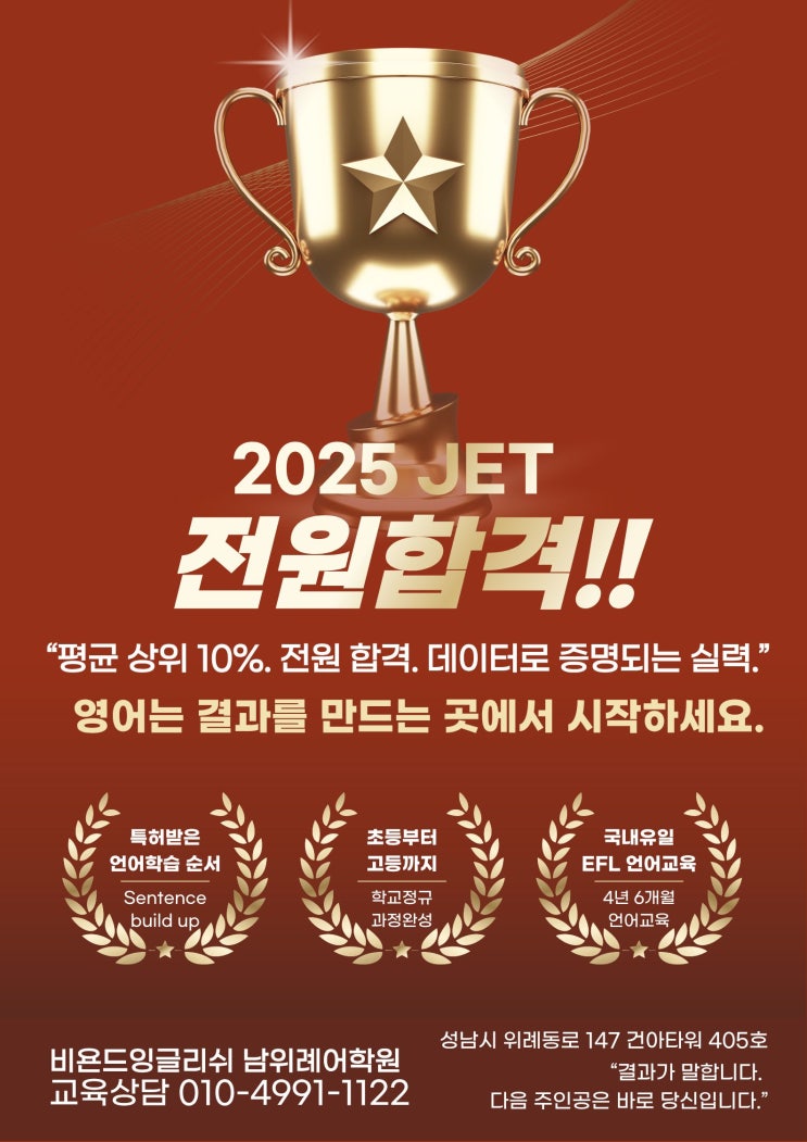 [위례 영어학원] JET 시험 대비반 모집|작년 상위 10% 결과, 이번에도 준비합니다