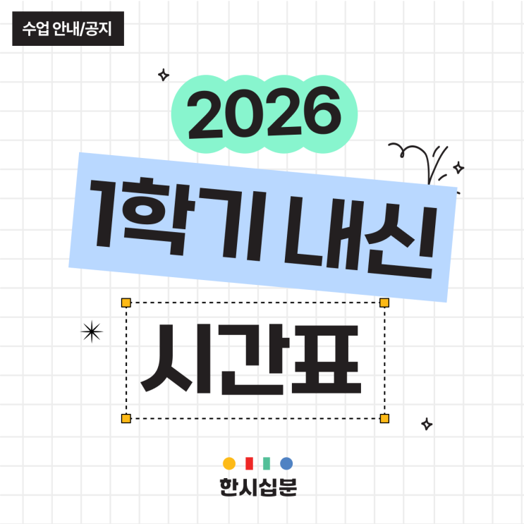 개학 시간표입니다. 고3 언매 수업을 2타임을 더 잡아야 하고 나머지 시간은 확정입니다. 중학교는 늘중만 참여 가능하며 고등학교는 현재 재학중인 학교만 수업에 참여 가능한 상황입니다 추가 반 개설은 어렵습니다. 구체적인 문의는 전화로 부탁드립니다 010 - 9785 - 0316 <img src="https://blogthumb.pstatic.net/MjAyNjAyMjRfMjEw/MDAxNzcxOTM5ODk0Mjk2.bg3KrD0ilceaXq2iy3fs3LjExJ6ZrvHxbxDSDyJ-8gcg.5Bv1QGhjDhOrmdt9f5hiiKn31vhgNcLFLPGjyqdnHnog.PNG/image.png?type=s3" />