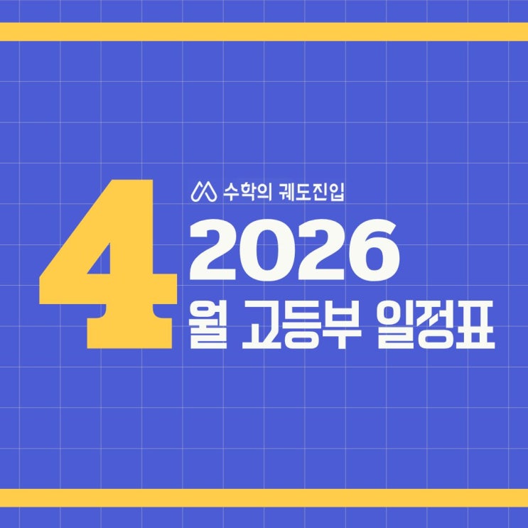 수학의 궤도진입 학원 4월 일정표 안녕하세요 벚꽃이 만개한 4월을 맞아 이번 달 학원 주요일정을 담은 4월 일정표를 공유해드립니다! 수학의 궤도진입 학원에서는 곧 다가오는 1차 지필고사 대비로 바쁜데요 올해의 첫 시험을 잘 준비할 수 있도록 일정표 참고해주세요~ <4월 주요 일정 소개> 판교고 2학년 확통 내신파이널반 개강 판교고 내신 대비 확통 파이널반을 통해 학생들이 열심히 실력을 키우고 있습니다. 고3 더 프리미엄 모의고사 수능과 똑같은 방식으로 진행되는 고3 더 프리미엄 모의고사가 4/19에 진행 예정입니다. 1차 지필고사(수학) 4/23(목)에 각 학교에서 1차 지필고사(수학)이 진행됩니다. 시험 전....... <img src="https://blogthumb.pstatic.net/MjAyNjA0MDdfOTcg/MDAxNzc1NTYxMDc4OTU4.asPq6AThaW5AXj_vyIysDMEUolOoPuZkEKlZQfZ4WN8g.rAgmS5i9YwnjmKLDLJHCt0qj5v3oOhBxApV3Kp7BBXkg.JPEG/%C1%A6%B8%F1.jpg?type=s3" />