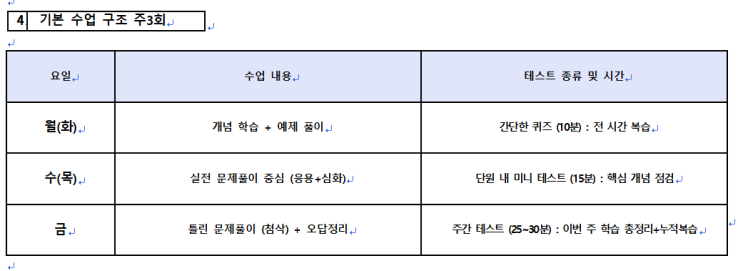 시험 점수는 단순히 지식을 재는 척도가 아닙니다. 그것은 우리 학생들이 매일 꾸준히 쌓아 올린 공부 루틴과 확고한 습관이 만들어낸 필연적인 결과입니다. 계획을 세우고, 그 계획을 완벽하게 이행하며, 미진한 부분은 그 주 안에 반드시 마무리 짓는 과정. 이것이 곧 우리 학생들의 성적을 결정합니다. 주먹구구식으로 이 과목 저 과목을 손대는 공부가 아닙니다. 매일 계획된 양을 완수하고 성취감을 맛보세요. 그리고 그 성취를 바탕으로 조금씩 더 나아가세요. 그 과정 속에서 여러분의 능력은 점진적으로 확장될 것이며, 이는 결국 효율적인 학습과 우리 학생들이 갈망하는 만족스러운 점수로 이어질 것입니다. 이것은 거창한 일이 아닙니....... <img src="https://blogthumb.pstatic.net/MjAyNTEyMDFfMTg1/MDAxNzY0NTY3OTg5MjA2.wwmx33-wBhLsUBR9NyxdPE7n8_Yq-rBHTIkF1qx1t4Qg.fMBiq54HYPUQsCEkeoxanefFX9lyXkuWpTWUZNvKf1Mg.JPEG/12%BF%F9%B8%BB%B0%ED%BB%E7.jpg?type=s3" />
