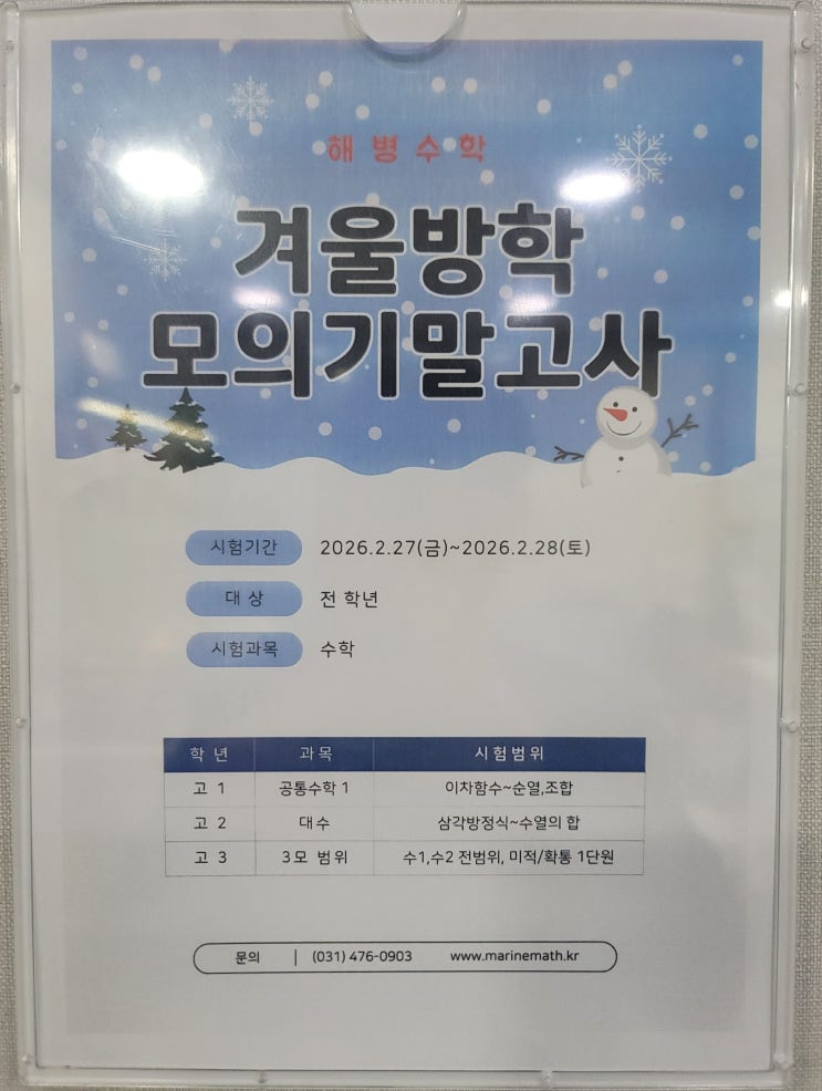 [평촌 수학학원] "두 달간의 겨울방학 특강, 진도만 나갔습니까?" 해병수학 겨울학기 자체 기말고사 실시