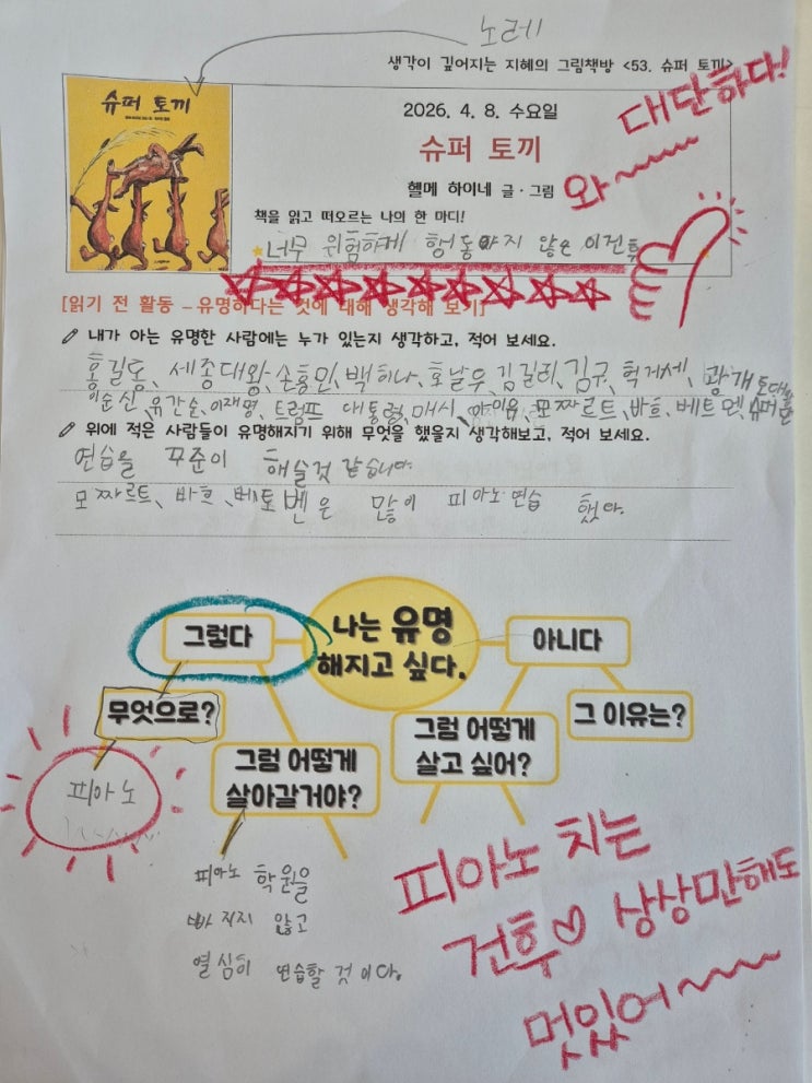 어느덧 봄이 성큼 다가와 따뜻한 햇살과 함께 아이들의 하루도 한층 더 밝아지는 요즘입니다. 싱그러운 계절의 기운처럼 우리 아이들의 작품에도 생동감이 가득 담기고 있어요. 오늘은 4월 1–2주차 수업 리포트로 찾아뵙게 되었습니다! 4월의 주제: [Black Gold : 세상을 움직이는 검은 황금] 지독한 냄새가 나는 '악마의 배설물'이라 불리던 검은 액체가 어떻게 세상을 밝히는 '빛'이 되고, 멸종 위기의 고래를 구한 '영웅'이 되었을까요? 이번 달 루다는 이 흥미진진한 석유의 세계사를 미술로 풀어냅니다. 검은 석유 속에 숨겨진 눈부신 가치를 발견하듯, 아이들 각자의 재능이 빛나는 4월의 캔버스를 기대해....... <img src="https://blogthumb.pstatic.net/MjAyNjA0MjBfMTQ4/MDAxNzc2Njc5NTg2MDA1.V8gCuTpv8-jz6lEiRccoMaXvGjTTKk1YAk5ELeX7sZcg.CX-WvsQx2mbqJg-PFX-T6omybxdV40dezC1o3Eu1JS4g.PNG/KakaoTalk_20260420_190519482_02.png?type=s3" />