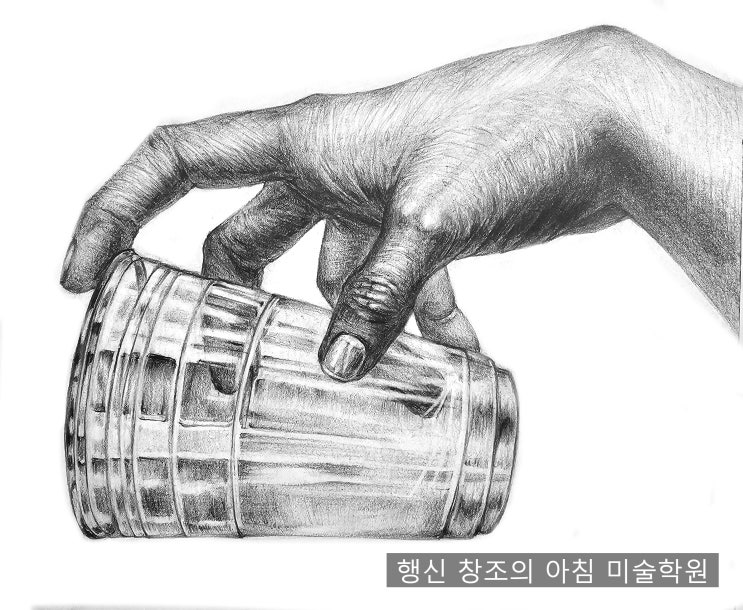 안녕하세요 행신 창조의아침 미술학원 입니다. 오늘은 미술대학 상위권 학생들을 위한 기초 조형 수업을 건섹재료로 수업을 진행 하였습니다. 손 + 프라스틱 컵 1️⃣ 전체 인상 손과 투명 플라스틱 컵을 소재로 한 정밀 소묘입니다. 관찰력 + 명암 이해 + 질감 표현 능력을 확인하기에 좋은 주제 선택입니다. 전체적으로 완성도는 예비반 학생 작품으로 중상 이상 수준으로 보입니다. 2️⃣ 잘된 부분 ✔ ① 구조 이해 (형태 정확도) 손의 관절 구조가 자연스럽습니다. 엄지와 검지의 힘 전달이 잘 표현되었습니다. 컵의 원통 구조와 타원 각도도 안정적입니다. → 기본기 탄탄한 학생입니다. ✔ ② 명암 단계 표현 손등의 입체감이 매우 좋....... <img src="https://blogthumb.pstatic.net/MjAyNjAyMTlfMjYz/MDAxNzcxNDgzMTAxMTQ3.5ZKvOpYcGL4FkCaFWTQgRtZUUOqkFOHjpwz0E_Cgk30g.JCvBLK0MBGFzcS03GqG4PMDCwoerW5m4X4ycIw76A-Qg.JPEG/KakaoTalk_20260131_174556862_20.jpg?type=s3" />
