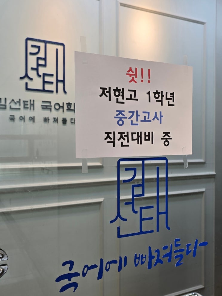 2026년 4월 23일 목요일 저현고 1학년, 첫 중간고사를 앞두며 자공고 전환 후 처음, 고교학점제 도입 후 처음, 김선태국어학원과 함께 빠르면 중3 겨울방학부터 또는 고교입학 3월부터 달려온 시간이 빛을 발할 날입니다. 드디어 내일입니다. 자율형공립고(자공고)로 새롭게 전환된 저현고가 맞이하는 첫 번째 시험이자, 고교학점제 도입 이후 처음으로 실시하는 중간고사 입니다. 고교학점제 첫 해는 1학기 국어 중간고사를 치르지 않았기에, 이번 시험이 갖는 의미는 더욱 특별합니다. 김선태국어학원은 3월부터 음운의 변동(문법)을 시작으로, 이 날을 향해 함께 준비해왔습니다. 이번 시험, 이렇게 준비하세요. 시험 범위 안내에서 눈에 띄는....... <img src="https://blogthumb.pstatic.net/MjAyNjA0MjJfMTUy/MDAxNzc2ODUzNTg5MTU5.d1NFxao1GEojyojKXS8U7RFOerIYAsFhFhHfs_pNFHog.I3CZKhgIiFye0TFePQRXtVX8Sy9UXSkX9dAHm3xl0qEg.JPEG/900_1776853511281.jpg?type=s3" />