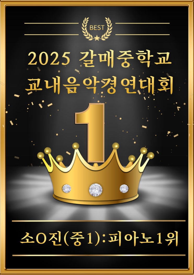 수상을 축하합니다 /갈매중학교 교내음악경연대회/ 1등 / 갈매작은별피아노/ 갈매작은별음악학원