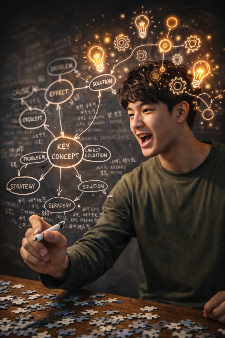 [4화] 눈으로만 읽는 공부는 "가짜"다: 깊은 이해를 위한 "능동감각" 도서관에 가면 흔히 볼 수 있는 풍경이 있습니다. 팔짱을 낀 채 인강 화면만 뚫어져라 쳐다보는 학생, 형광펜으로 줄만 예쁘게 긋고 만족하는 학생. 이들은 공부를 했다고 착각하지만, 뇌과학적으로 보면 "뇌가 쉬고 있는 상태"에 가깝습니다. 손의찬 저자는 말합니다. "편안한 공부는 죽은 공부다. 공부는 뇌를 괴롭혀야 한다." 이것이 바로 1+3 이론의 마지막 기둥, "능동감각(Active Sense)"입니다. 1. 수동적 공부 vs 능동적 공부: 뇌의 스위치를 켜라 ▶ 수동적 공부: 정보가 눈이나 귀로 들어와서 뇌를 거치지 않고....... <img src="https://blogthumb.pstatic.net/MjAyNjAxMTZfNTQg/MDAxNzY4NTY2MjY2NDkz.qEXCEdV3zyAn5Uj22uTLriRert3YLL3JmfwGwtacaZgg.AlK8bMW_2O4hUfHE0MuNdhsKDbGXi7yrNfxONliRG9Yg.PNG/4%C8%AD_%B4%C9%B5%BF%B0%A8%B0%A2.png?type=s3" />