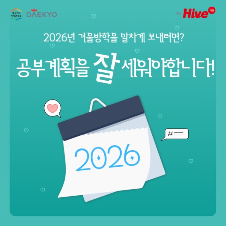 겨울방학 알차게 보내고 계신가요? 겨울방학은 새로운 학년으로 올라가기 전에, 학습 습관을 다잡을 수 있는 소중한 기회입니다^^ 오늘은 학습 계획을 어떻게 세워야 하는지, 유의할 점은 뭔지 알려드리도록 하겠습니다. 어릴 때부터 학습 계획을 세우며 학습 습관을 제대로 만들어야 중학교 고등학교 진학한 뒤에도 학습 계획을 스스로 세울 수 있습니다. 적어도 초등학교 3학년부터는 구체적인 학습 계획 세워야 합니다. 왜냐하면 초등3학년부터는 사회 과학 등 과목이 늘고, 내용이 어렵기 때문에 계획을 세우지 않으면 안됩니다. 학습계획은 연간이나 특정 기간 목표를 정하고 월간, 주간, 일간으로 세분화하는 게 좋습니다. 예를 들어, 예비....... <img src="https://blogthumb.pstatic.net/MjAyNjAxMjFfMTE0/MDAxNzY4OTU4ODkyMTM0.geMu2OgNpQvInqVAErDuXBumI6P8Q65199yvw-txT4Yg.XL4ItN7TWYojJstNezGXQooQzDC6ah5HZg-kbDc3VOsg.JPEG/2026_%C7%D0%BD%C0%B0%E8%C8%B9_1.jpg?type=s3" />