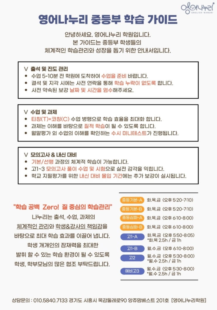 [시흥영어학원]영어나누리 중등부 학습가이드
