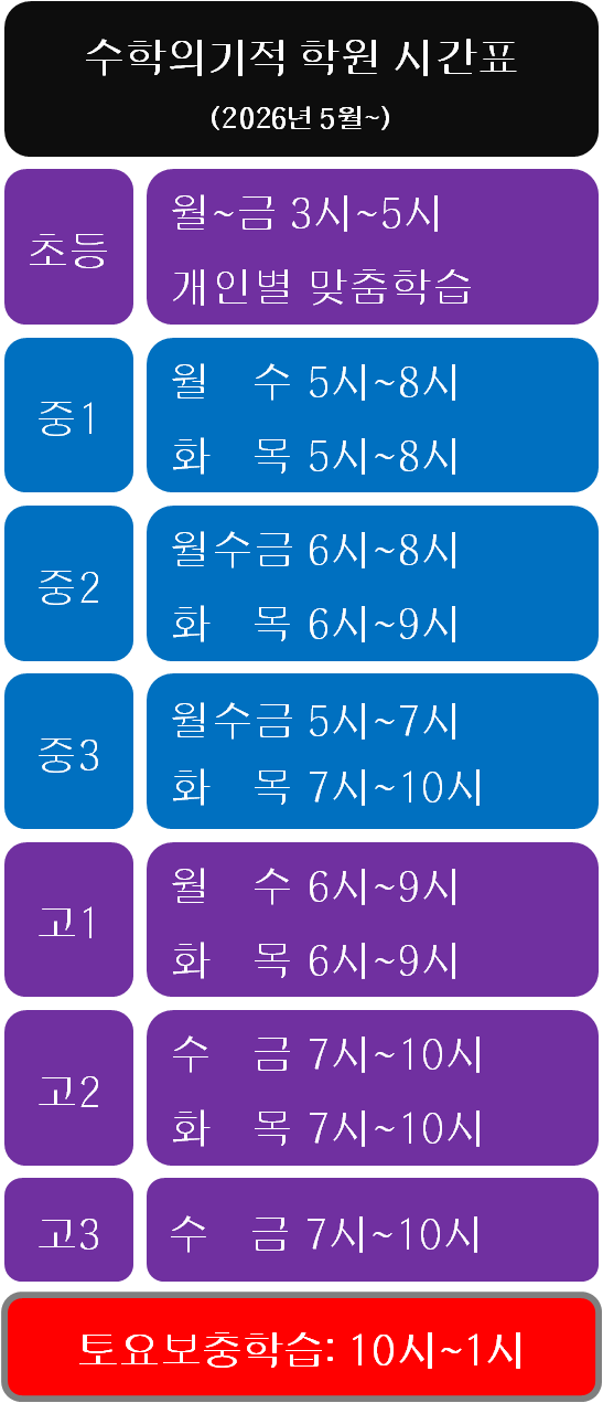2026년 수학의기적학원 시간표