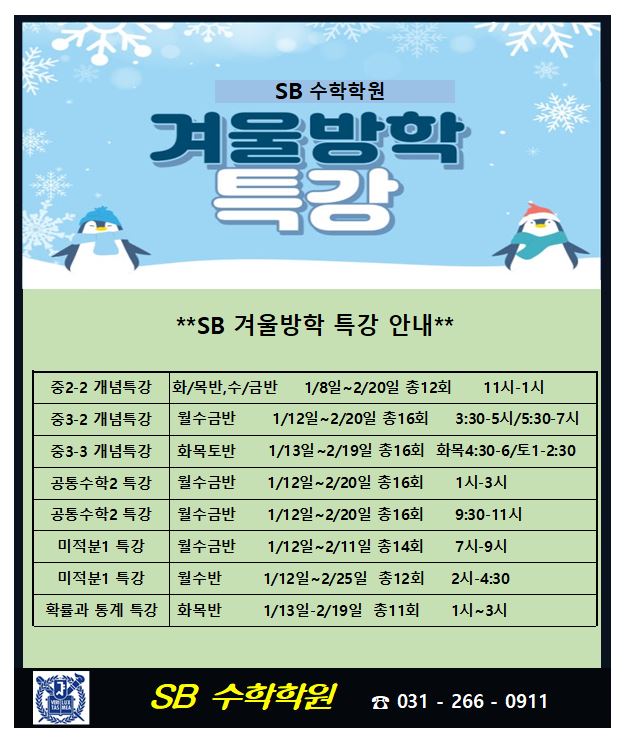 겨울 방학 특강 안내~~