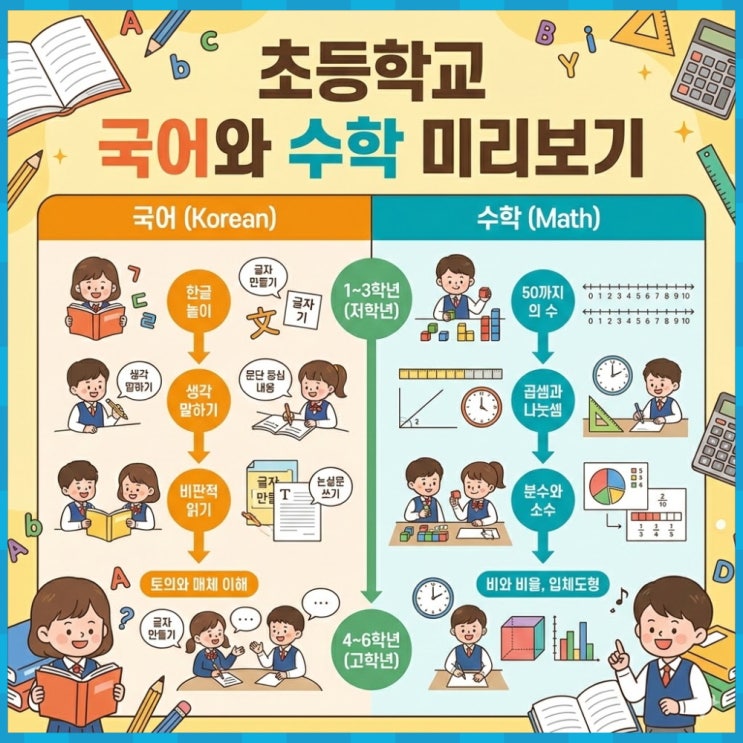 안녕하세요, 눈높이수지 Hive 입니다. 오늘은 새학년 새학기 교과서 단원별 내용을 함께 살펴 보고자 합니다. 1학년: 학교 적응과 기초 다지기 국어는 '한글 놀이'를 통해 글자부터 문장까지 읽고 쓰는 기초를 탄탄히 다집니다. 수학은 50까지의 수와 기초 연산이 70%를 차지하므로, 올바른 공부 습관을 형성하며 수와 친해지는 것이 가장 중요한 목표입니다. 2학년: 표현의 확장과 곱셈의 시작 국어는 자신의 생각을 조리 있게 말하고 글의 재미를 느끼는 데 집중합니다. 수학은 세 자리 수와 곱셈의 원리를 배우며 연산의 폭을 넓힙니다. 실생활과 연계된 학습을 통해 수학에 대한 거부감을 없애는 시기입니다. 3학년: 학습 격차가 시....... <img src="https://blogthumb.pstatic.net/MjAyNjAyMTJfMjE5/MDAxNzcwODY3ODU4NzQy.On2B08VgeSeRg-z6ZojmBZzmZI_zMRgwk_hD26DPJ2Ug.hY4LK1cfoeYjWfoVtVuApyJwXo8A_8TpDbBuwPs02uQg.JPEG/%C3%CA%B5%EE%B1%B3%B0%FA%BC%AD%B1%B9%BE%EE%BF%CD%BC%F6%C7%D0.jpg?type=s3" />