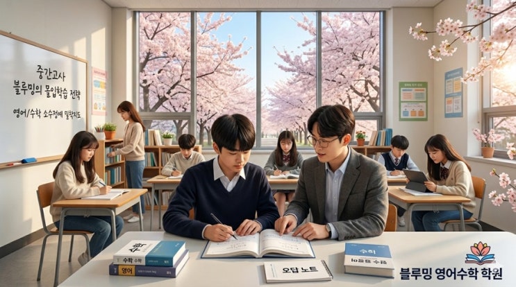 안녕하세요, 블루밍 영어수학입니다! 꽃구경으로 힐링하셨나요? 이제는 다시 '열공 모드'로 전환할 시간입니다. 중간고사가 딱 열흘 뒤로 다가왔거든요! 블루밍 제안 D-10! 1. 영어: 단순 암기는 금물! 마송고·통진고 스타일의 변형 문제에 대비해 문장 구조를 완벽히 파악해야 합니다. 2. 수학: 새로운 문제집보다는 오답 노트 3회독이 점수를 바꿉니다. 아는 문제를 절대 틀리지 않는 연습이 1등급을 만듭니다. 3. 몰입: 혼자 하면 힘들지만, 블루밍의 밀착 관리와 함께라면 끝까지 완주할 수 있습니다. 2026년 1학기 중간고사는 지금뿐입니다! 꽃핀 주말 놀고 싶은 마음도 많겠지만 오늘 묵묵히 애쓰는 모습을 칭찬합니다....... <img src="https://blogthumb.pstatic.net/MjAyNjA0MTFfMTgg/MDAxNzc1ODczMDkxMDQy.CdjgvWM3fsKASkh1Bk68YsDh6s9dutgCH-8KDih6Ai0g.PfEAzGDEekuN1R_RGmBot4VIyK4ejIrK5sH1VwbPq2gg.JPEG/IMG%A3%DF8045.jpg?type=s3" />