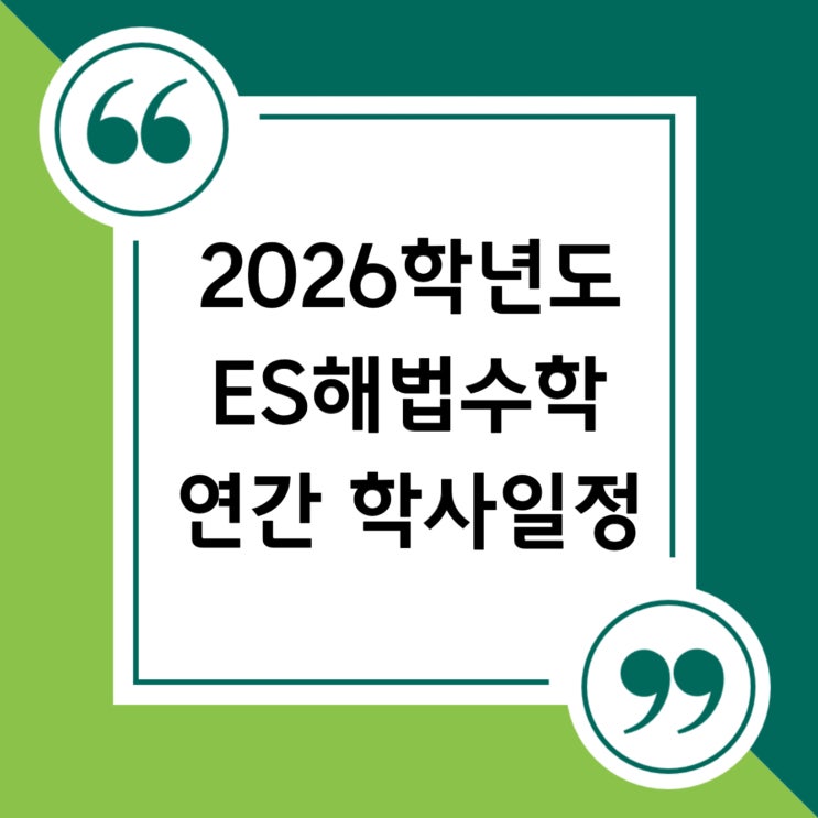 안녕하세요. 믿을 수 있는 교육 브랜드, 스마트해법수학 ES해법수학학원입니다 "아이들의 학습은 계획에서 시작됩니다!" 학생들이 보다 안정적이고 체계적으로 학습할 수 있도록 인근 학교들의 학사일정을 반영한 2026년 ES해법수학학원 연간 학사일정입니다. 학교 일정에 맞춘 체계적인 학습 관리와 시험대비 학교별 중간·기말고사 기간과 경시, 방학일정, 주요 학사일정을 모두 고려하여 시험대비와 학습 계획이 미리 준비될 수 있도록 연간 학습 흐름을 계획하여 운영하고 있습니다. "계획된 학습이 꾸준한 실력을 만듭니다." ES스마트해법수학학원은 우리 아이들 한 명 한 명의 학습 흐름을 체계적으로 관리합니다. 아이....... <img src="https://blogthumb.pstatic.net/MjAyNjAzMTVfMjUg/MDAxNzczNTY0NTkyMTY3.rBXkV_80no-Ld7KbnIZ4edqdSbIdVEhNP9N3EV-93GMg.pifGlGBZVbulnmMQfZkeWrEEL5G7wCjKM1he_xMHPx8g.JPEG/main.jpg?type=s3" />