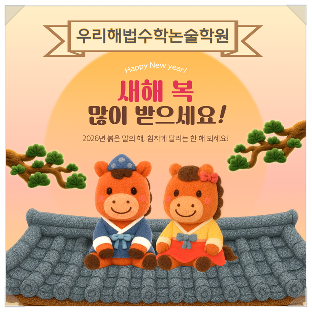 새해 복 많이 받으세요!!! 적토마와 같이 거침없이 달리는 한 해가 되시기를 바랍니다. 설 명절 선물! 올해도 조촐하지만 큰 마음의 선물을 준비했습니다. 더불어 우리 아이들이 명절 동안 놀기만 하지 않고 공부도 하고 설거지도 하면서 뜻깊게 보낼 수 있도록 하는 미션도 저희의 무형적 선물이라고 받아주시면 감사하겠습니다. 하하하... 설날 미션 이벤트! 1. 학습미션 개념노트쓰기 안내문을 꼭 읽어보세요. 내용도 중요하지만 자기만의 색깔로 정성껏 정리하는 것도 중요합니다. 그리고 개념마다 중요한 「Key포인트」를 꼭 넣어주세요~ 2. 설거지 미션 이번 설 명절 선물이 주방세제와 니트릴 장갑 세트입니다. 우리해법수학논술학원 제공....... <img src="https://blogthumb.pstatic.net/MjAyNjAyMDlfMjI0/MDAxNzcwNjIwMTI0Mzcx.8ItTqnqlSfrqctEJ_XtzwwAiv9lcw8vKBEd1Gvsx-KQg.AJhb7jwBFLs9PRNO0LSfVH8BKc7LgLDwUHuwG88xiB4g.PNG/%B4%EB%B9%AE.png?type=s3" />