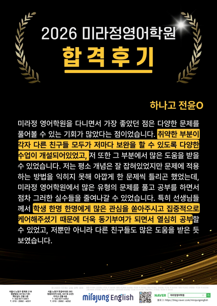 [중계 미라정영어학원]합격후기3_하나고 대전영재고 대일외고 선덕고 서울외고